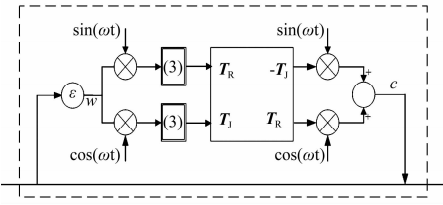 2015年,文獻(xiàn)[18]將電動(dòng)機(jī)傳動(dòng)控制中同步旋轉(zhuǎn)坐標(biāo)系(Synchronous Rotating Frame,SRF)變換的方法應(yīng)用于磁軸承系統(tǒng),其控制原理如圖7所示,相當(dāng)于一種新型的陷波濾波器,通過與控制器串聯(lián)工作在轉(zhuǎn)子低速旋轉(zhuǎn)時(shí)有良好的同步抑振性能。